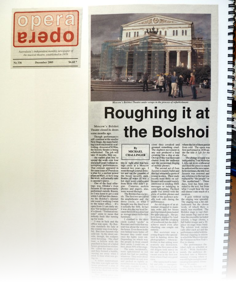 Michael has written articles on opera and musical subjects for Libretto magazine, Opera Opera and Limelight.